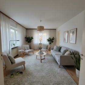 Einige der abgebildeten Fotos dienen als Wohnbeispiele und wurden mithilfe von KI generiert.