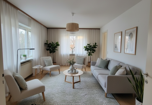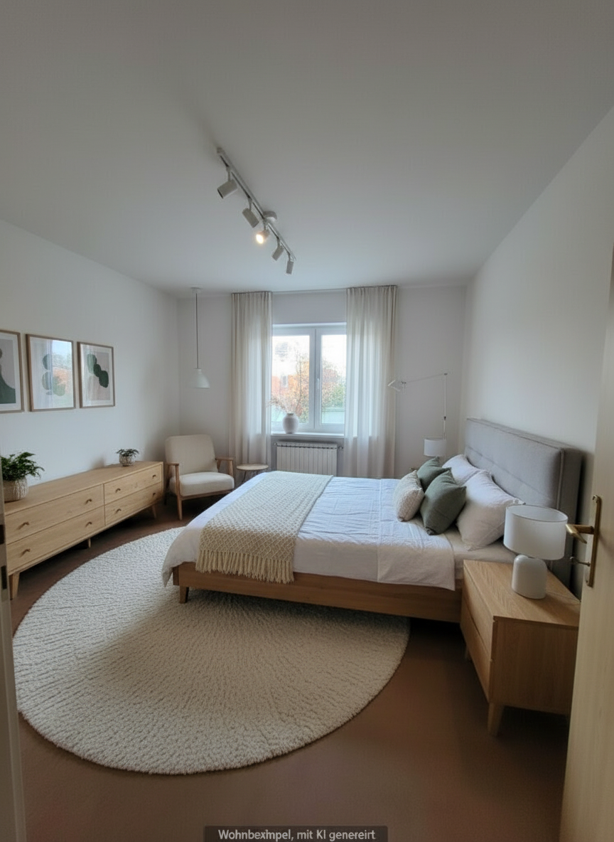 Einige der abgebildeten Fotos dienen als Wohnbeispiele und wurden mithilfe von KI generiert.